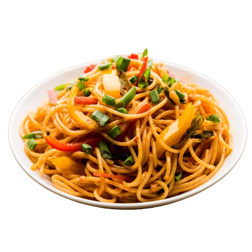 Macarrão-Bacon-Frango-Cebola-Pimentão-Mussarela-Molhho Shoyu-Molho de Alho