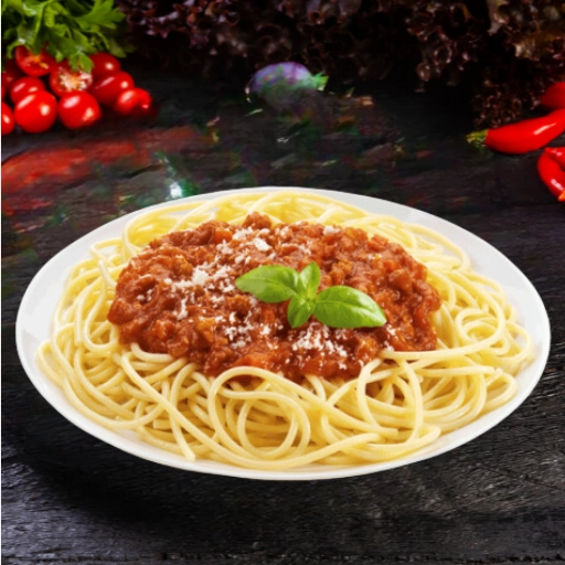 Macarrão-Bacon-Calabresa-Cebola-Pimentão-Mussarela-Molhho Shoyu-Molho de Alho